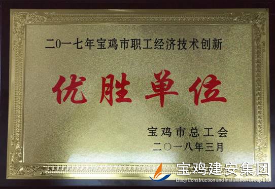 公司榮獲寶雞市職工經(jīng)濟(jì)技術(shù)創(chuàng)新優(yōu)勝單位