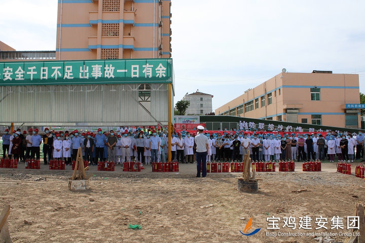 鳳翔縣醫(yī)院3號住院樓工程是全市重點(diǎn)建設(shè)項(xiàng)目之一,也是省、市、縣各級領(lǐng)導(dǎo)密切關(guān)注的民生工程。本項(xiàng)目建設(shè)地址位于縣醫(yī)院內(nèi),占地面積2100平方米,總建筑面積為45663.98平方米,框架結(jié)構(gòu)二十六層(其中地下兩層,地上二十四層),建筑高度97.1米,設(shè)計(jì)使用年限為50年,概算總投資1.98億元。項(xiàng)目自開工以來,受到鳳翔縣醫(yī)院領(lǐng)導(dǎo)高度重視和大力支持。通過此次消防實(shí)戰(zhàn)演練,項(xiàng)目部將更為嚴(yán)格的開展工地消防安全管理工作,重點(diǎn)做好以下三項(xiàng)工作: