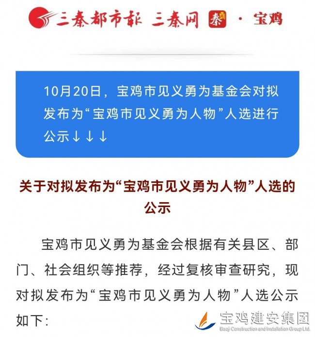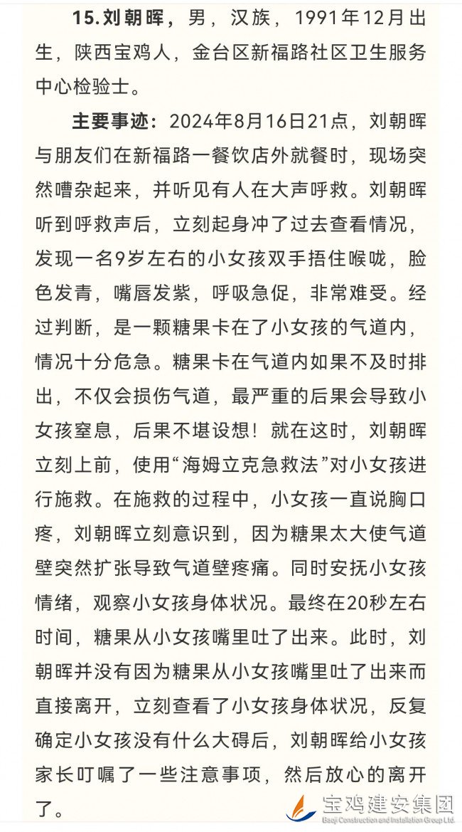日前,寶雞市見義勇為基金會面向全社會對擬發(fā)布為“寶雞市見義勇為人物”人選進行了公示,經(jīng)由公司工會推薦上報的新福路社區(qū)衛(wèi)生服務(wù)中心檢驗士劉朝暉同志光榮入選,榜上有名。