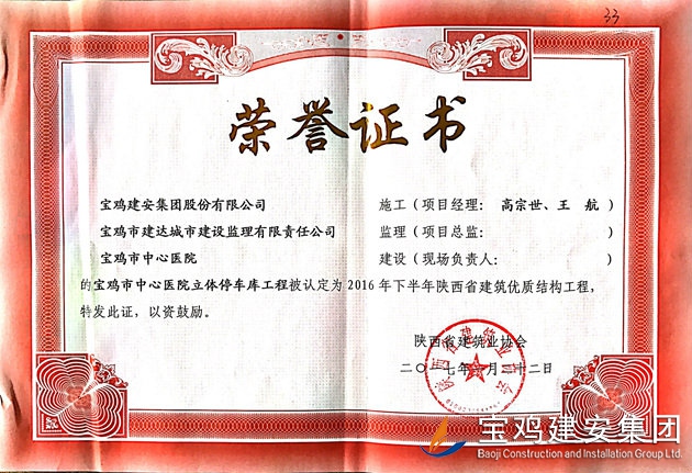 寶雞市中心醫(yī)院立體停車(chē)庫(kù) 省優(yōu)質(zhì)結(jié)構(gòu)工程