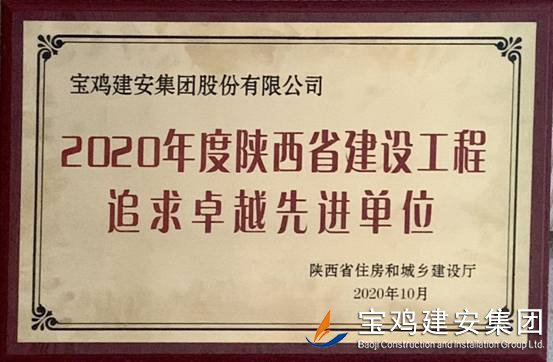 2020年度陜西省建設(shè)工程追求卓越先進單位