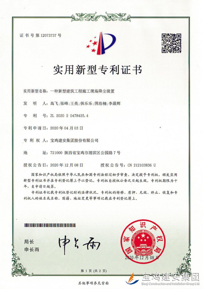 一種新型建筑工程施工現(xiàn)場降塵裝置實(shí)用新型專利
